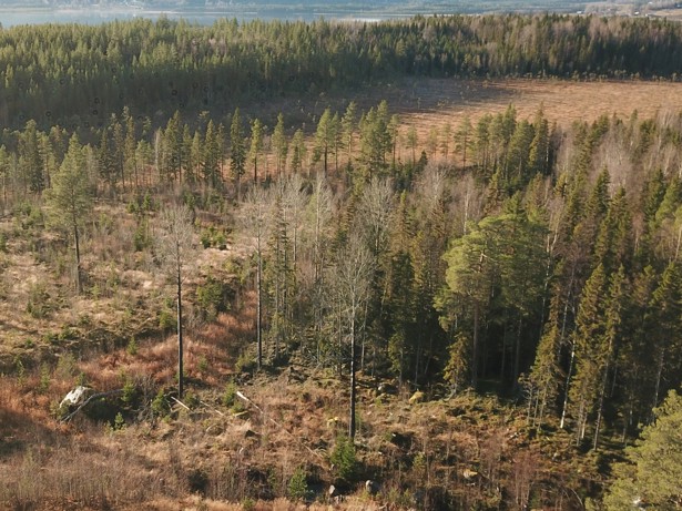 Trädslagsblandning tall 26%, gran 51%, löv 19% samt contorta 3%.