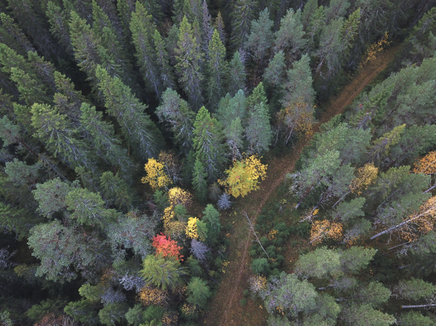 Trädslagsblandning tall 53%, gran 34%, löv 14%.