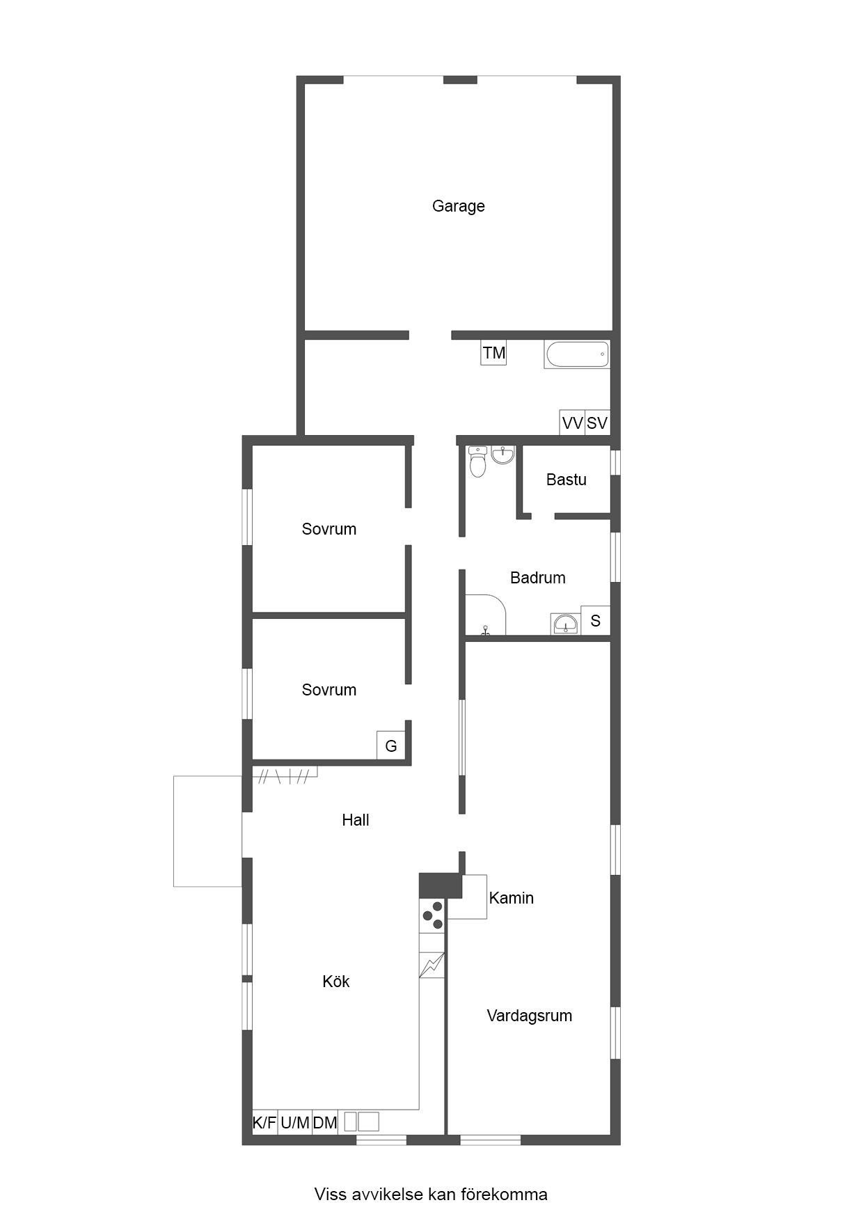Förråd/Tvättstuga: Golvbeklädnad av klinker. Rummet inrymmer teknik del för värmepump samt styrenhet till den vattenburna golvvärmen Tvättmaskin/frysbox/reningsfilter/genomgång/dörr till intilliggande 2-bilsgarage (ca 50 kvm).